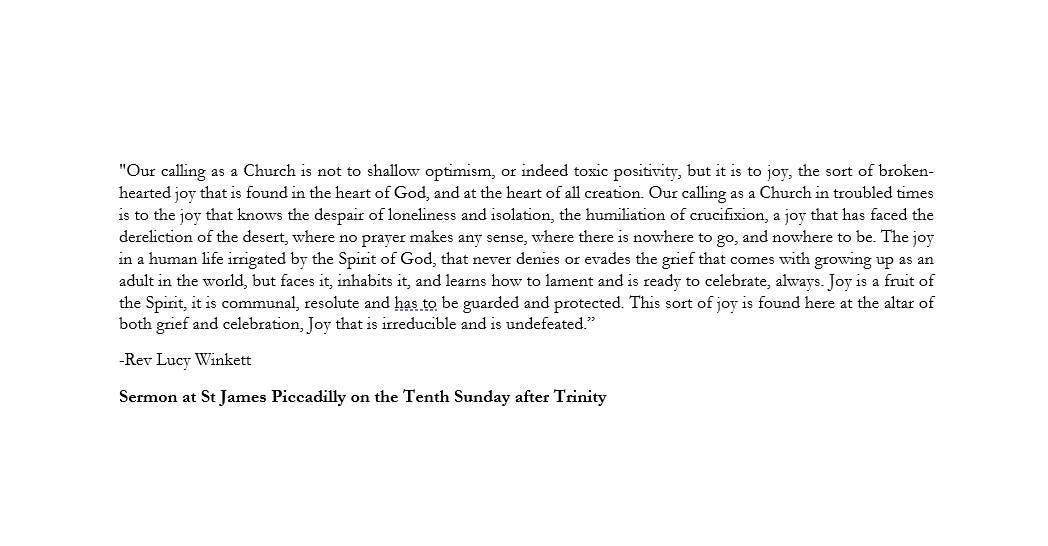 Time, even when it is at its most challenging, is precious. Joy doesn’t sit on enforced & relentless positivity and growth, but on reality - and I am going to snag this quote of Reverend Lucy Winkett from Sanjee, because it is perfect. This is the joy we must enter into, and what 2025 has broken in me allows the Holy Spirit to move in me to shape me to be whom I must become in 2026 and beyond.